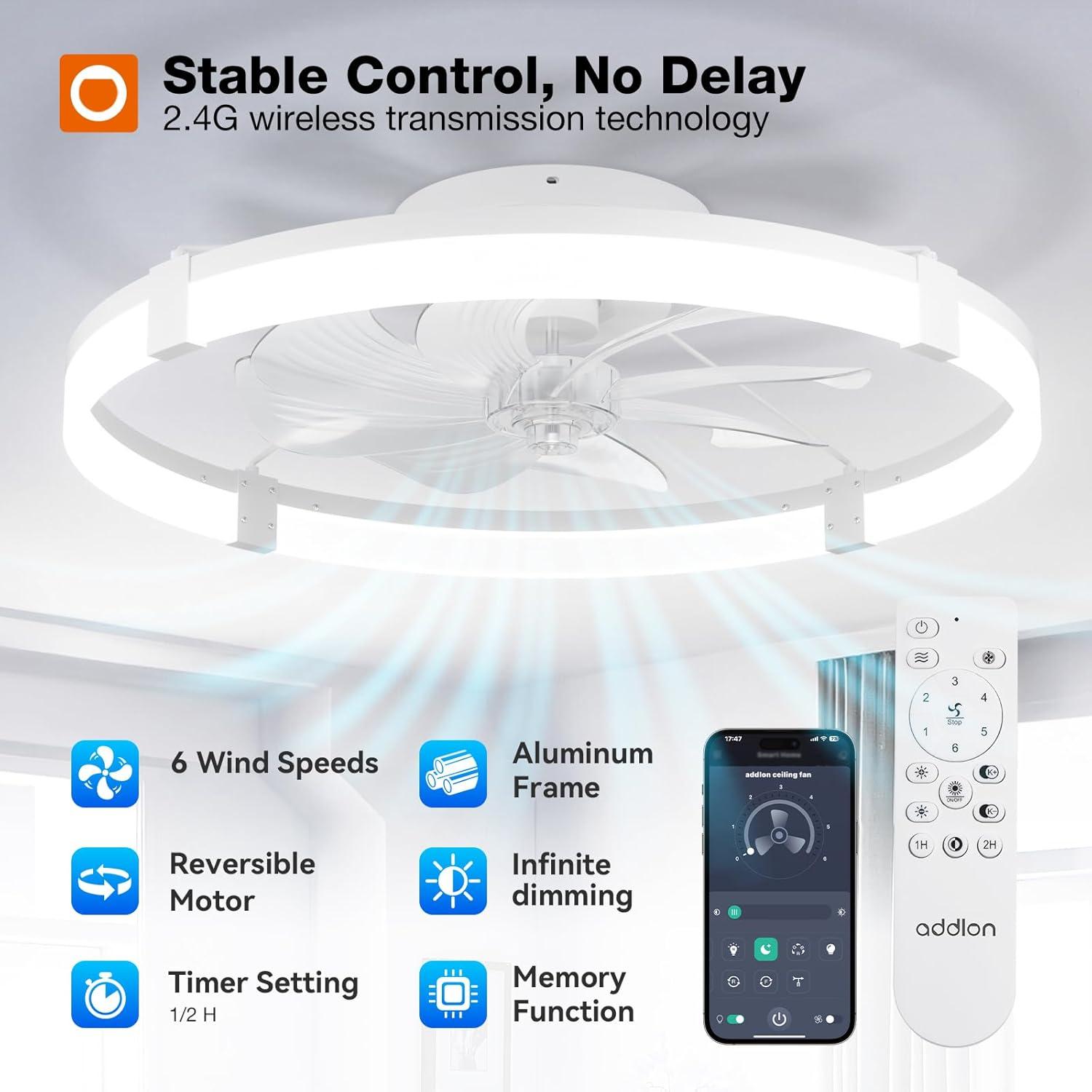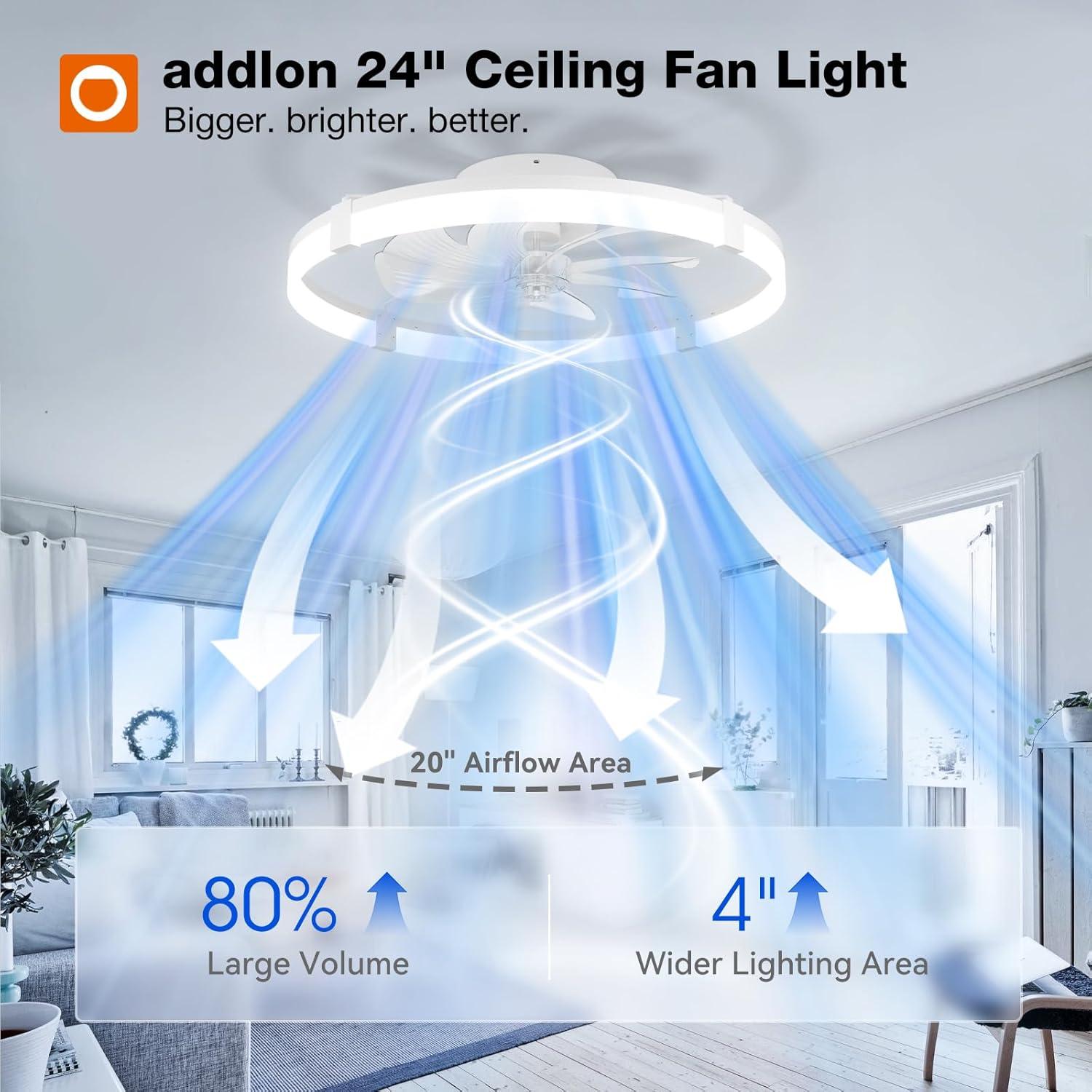 Be the first to review “addlon Ceiling Fans with Lights and Remote, 24” Low Profile Flush Mount Ceiling Fan, 3000–6000K Dimmable LED Fandelier, Bladeless Crystal Fan Light for Bedroom, Kitchen, Living Room, Black(White / Frosted)”