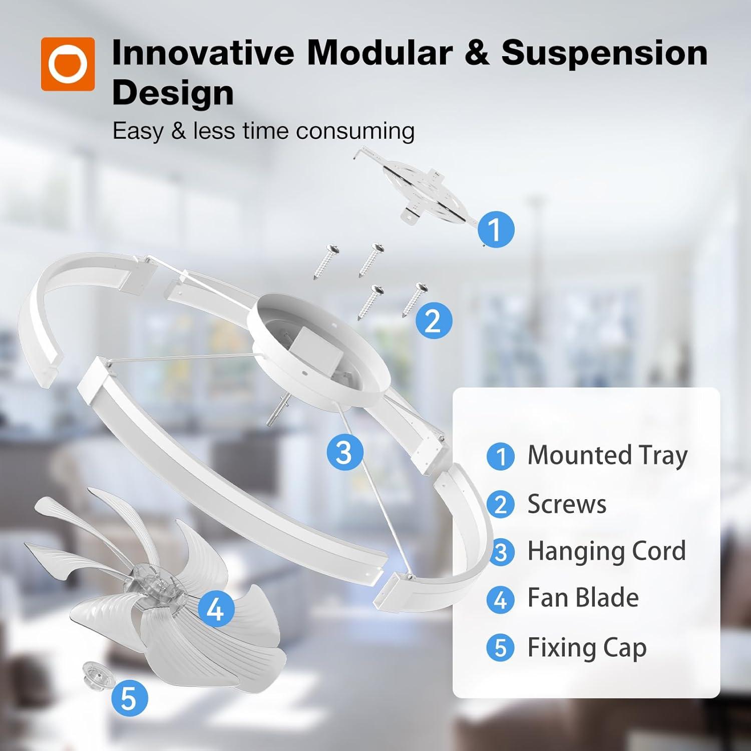 Quick Installation Design: Our modular design allows you to install the fan in just minutes. The large blades deliver stronger airflow while remaining safe for children and ideal for low ceilings. Its sleek, modern look complements any décor.